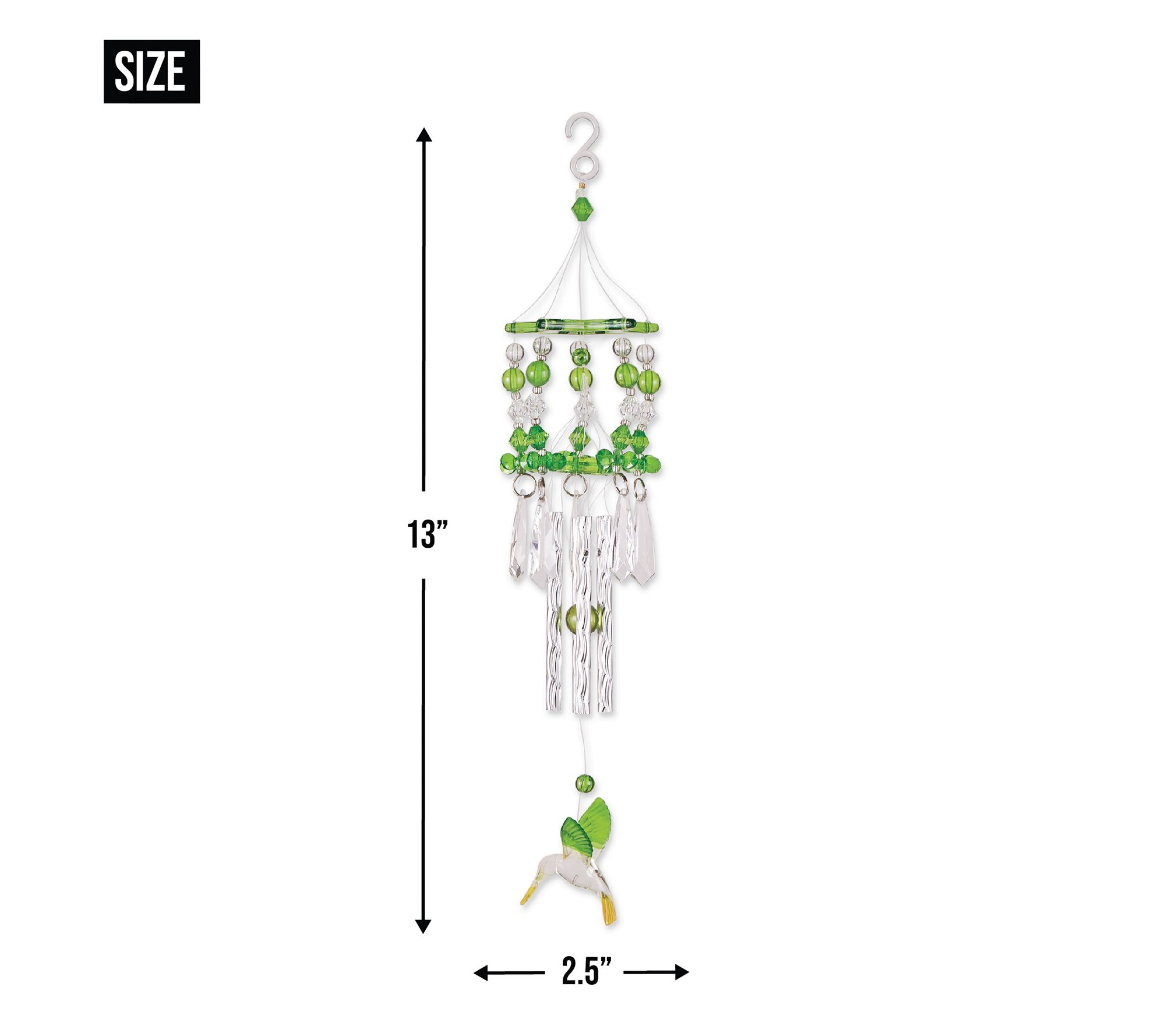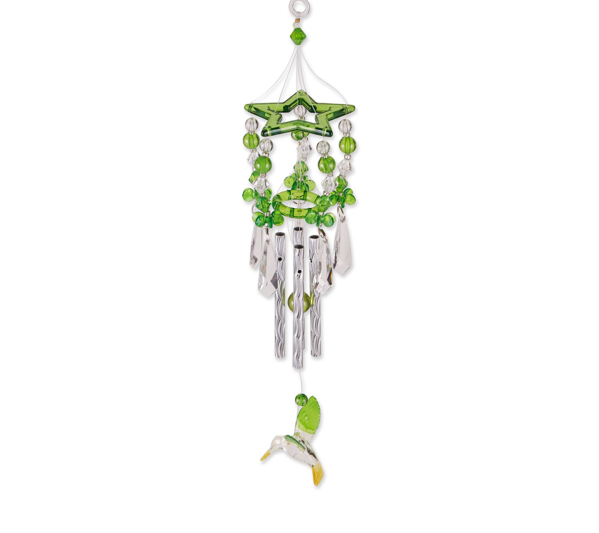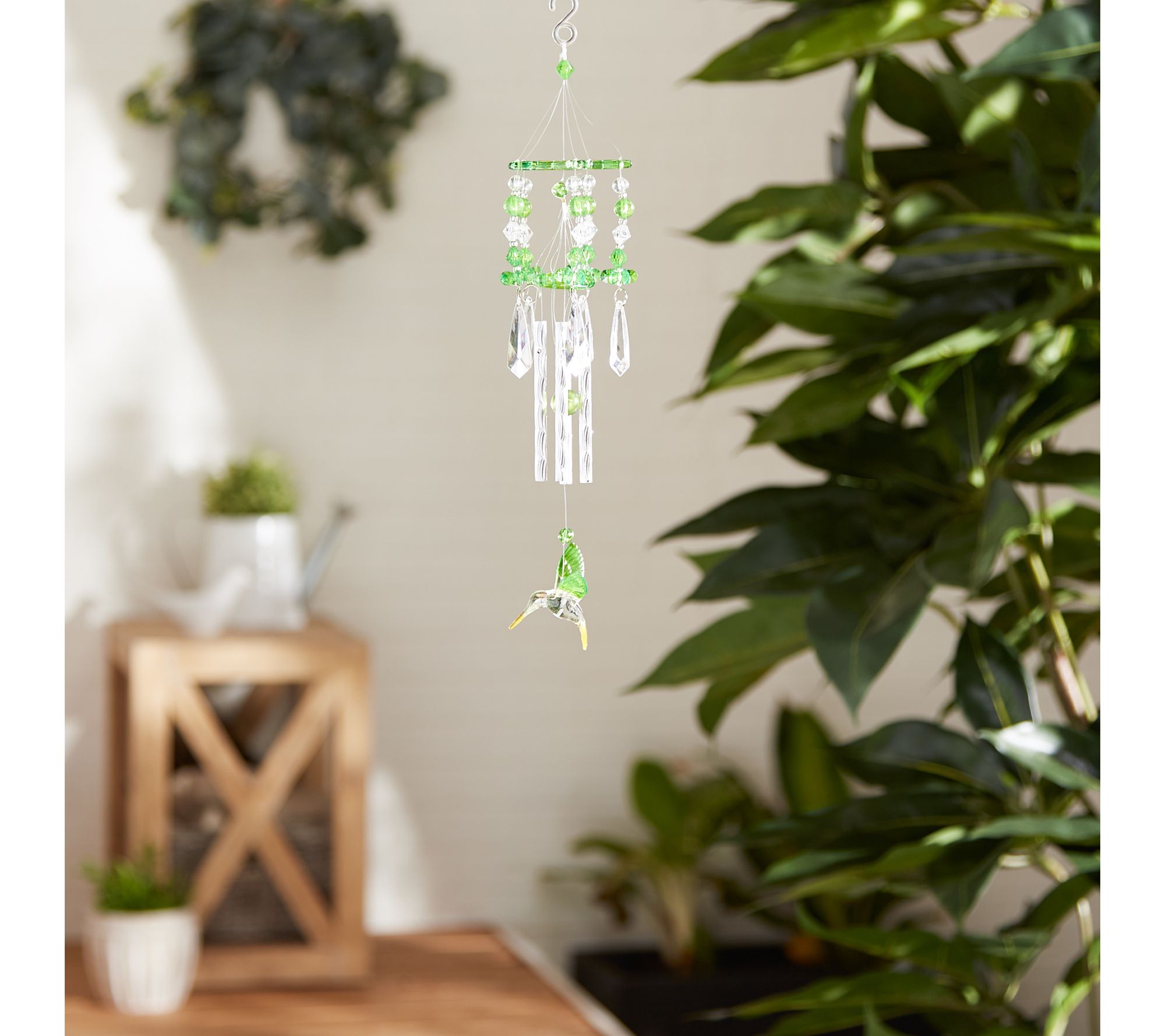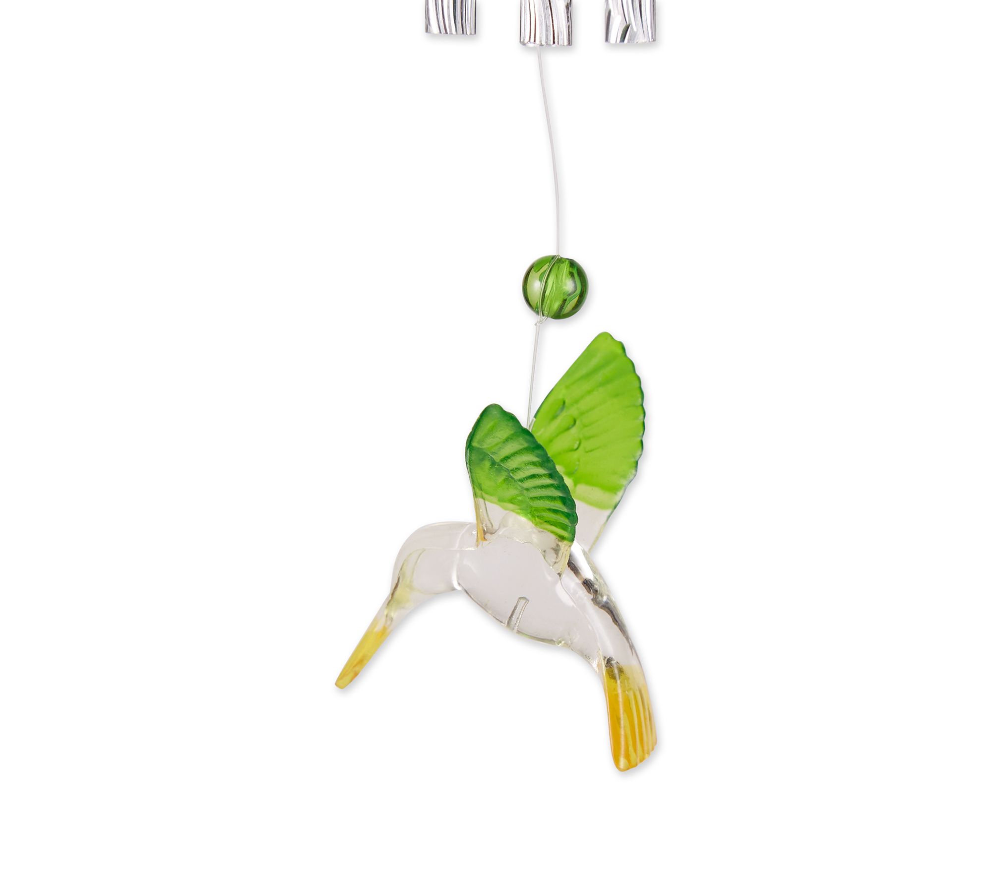 Enhance any outdoor or indoor space with the lovely sounds and sculptural beauty of this hummingbird wind chime. Hang it from your patio, garden, front porch, or kitchen window to fill your home with natural music and delightful art. From Zingz & Thingz.