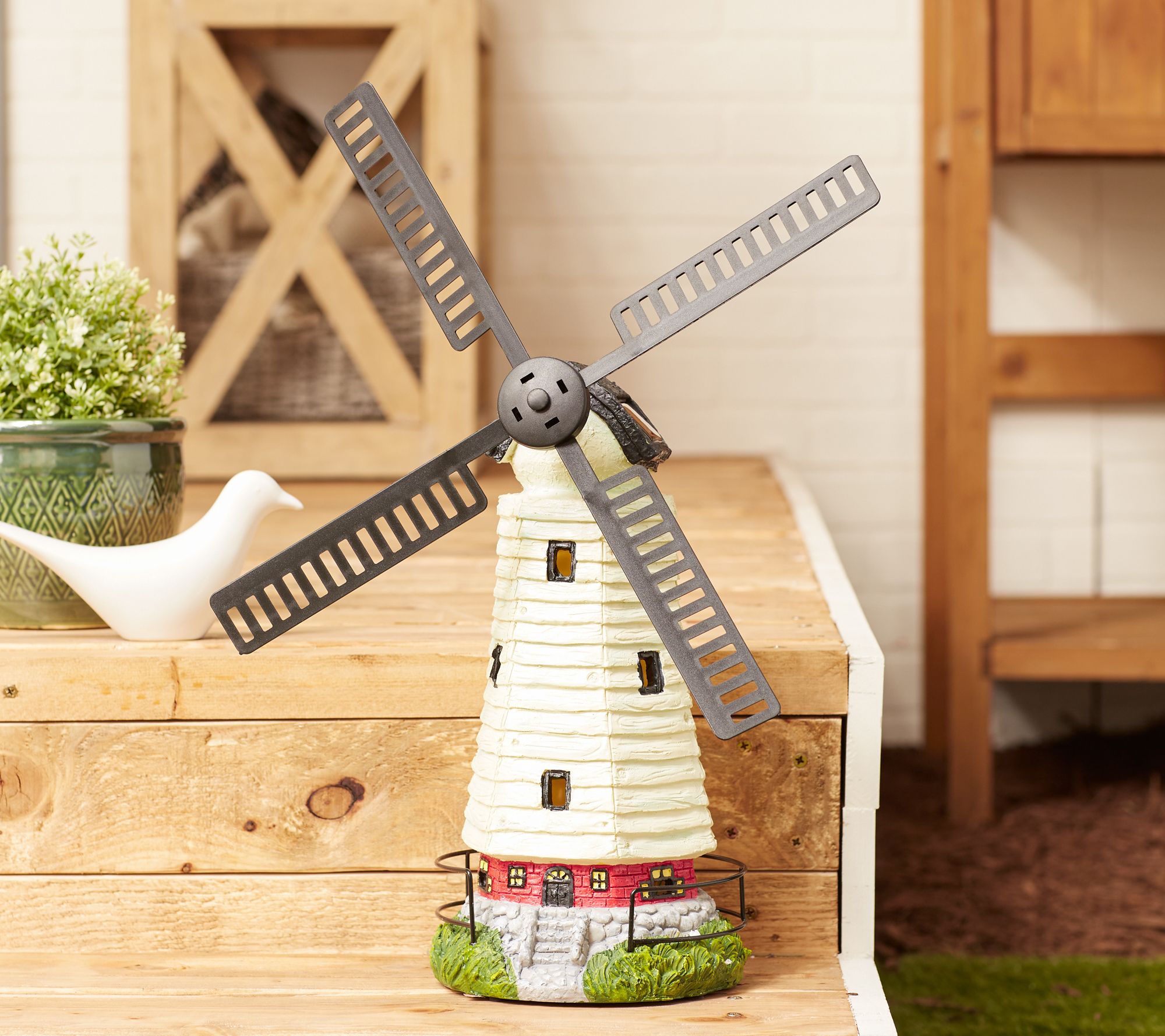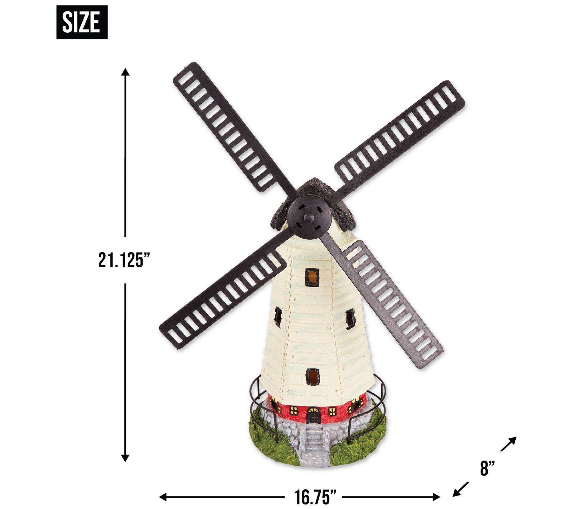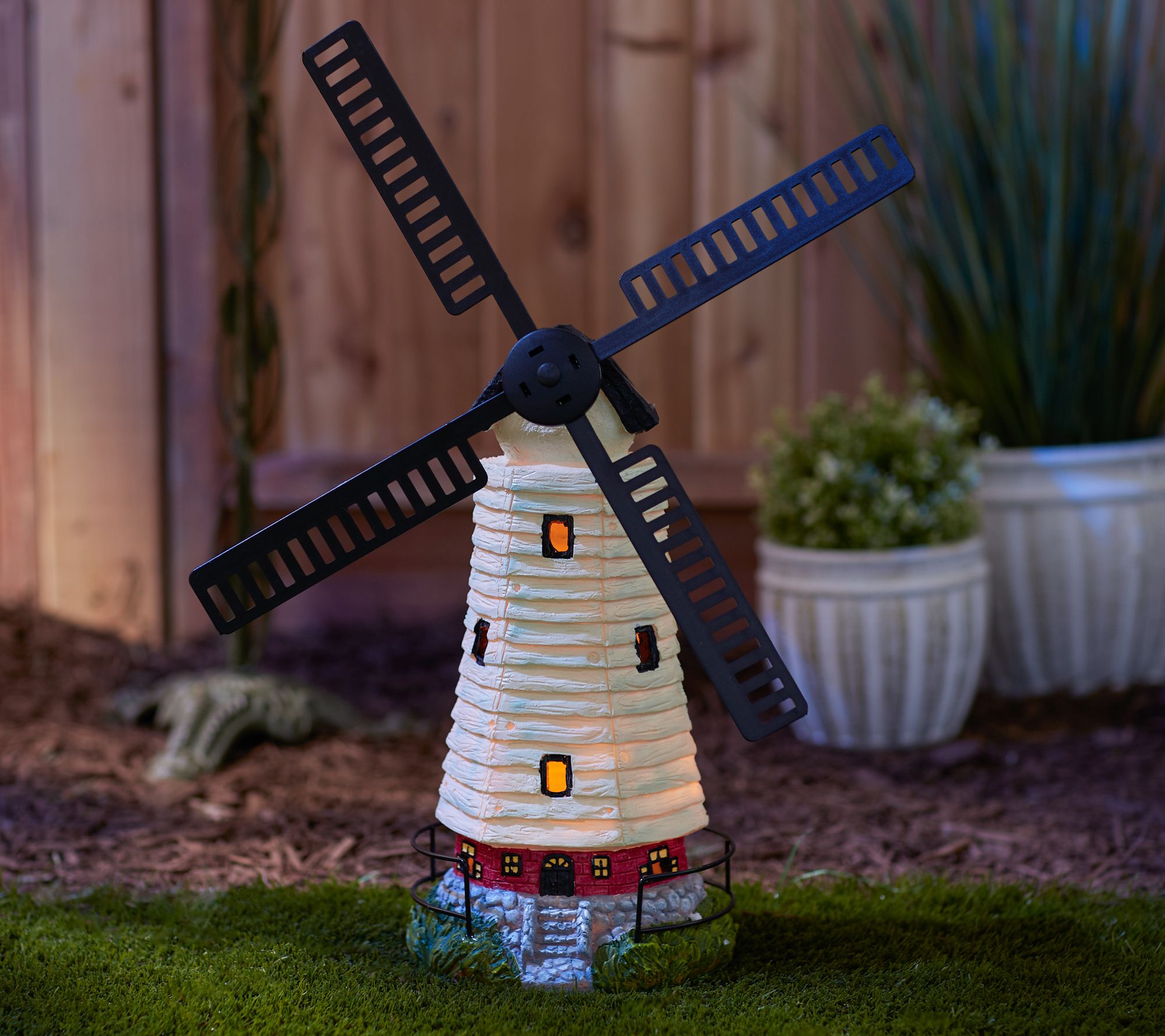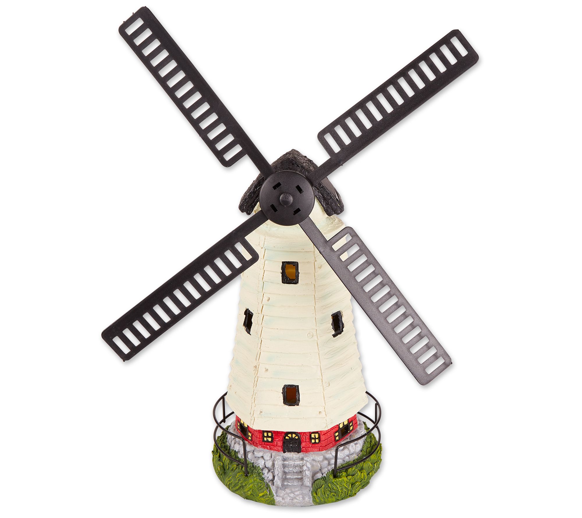 • Includes solar-powered windmill statue with LED light and rechargeable AA Ni-MH battery