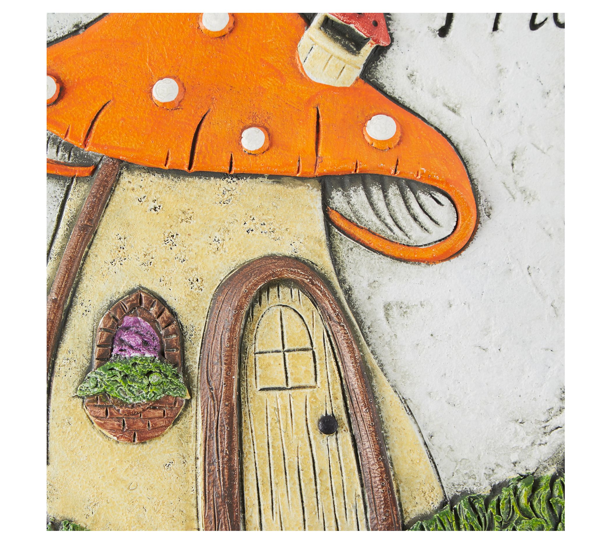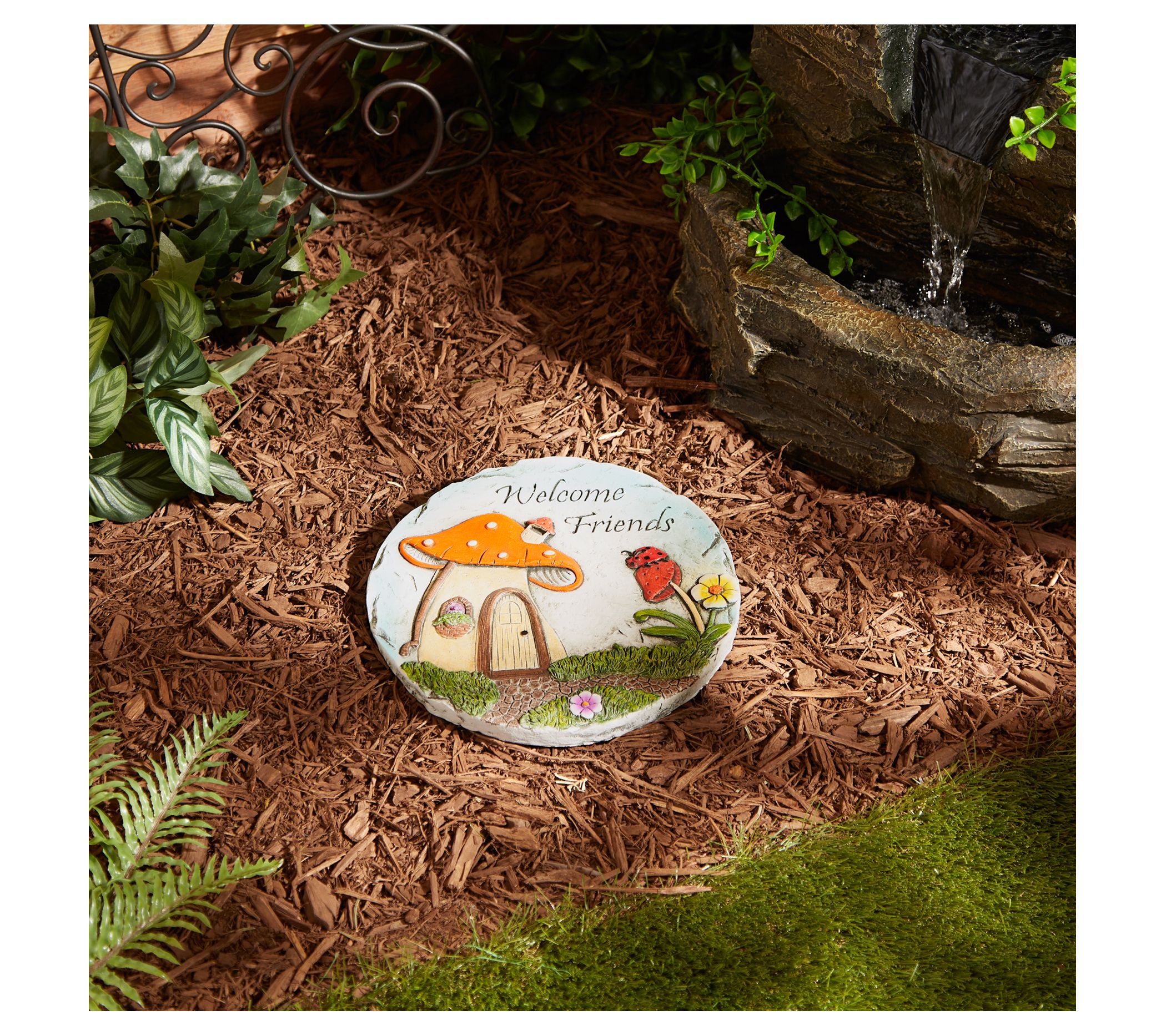 Bring a touch of whimsy and magic to your garden space with this welcoming stepping stone. This colorful accessory is perfect for a path or for placing in a flower bed, adding a playful element to your outdoor decor. From Zingz & Thingz.