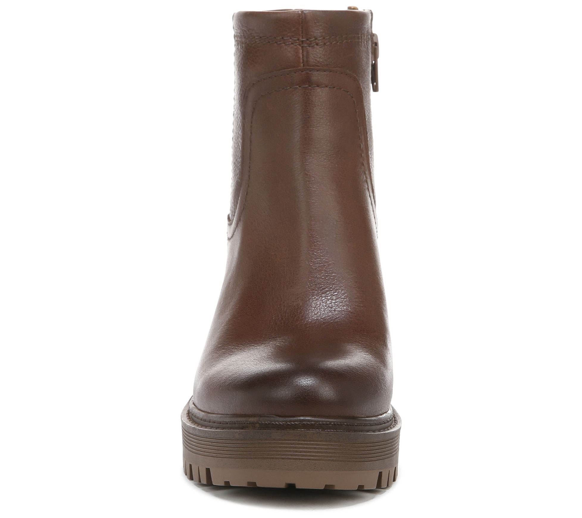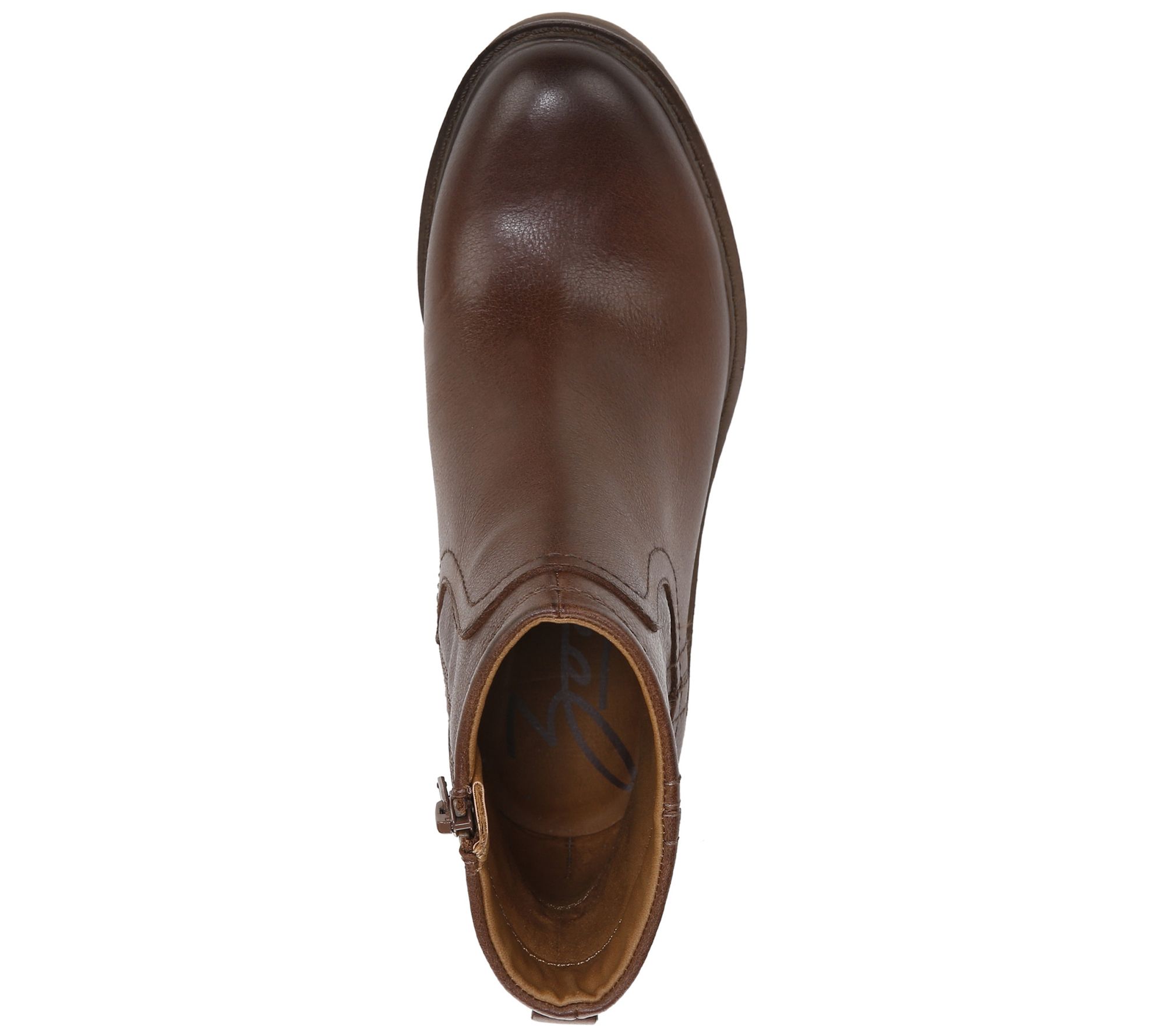 • Side zip, burnished round toe