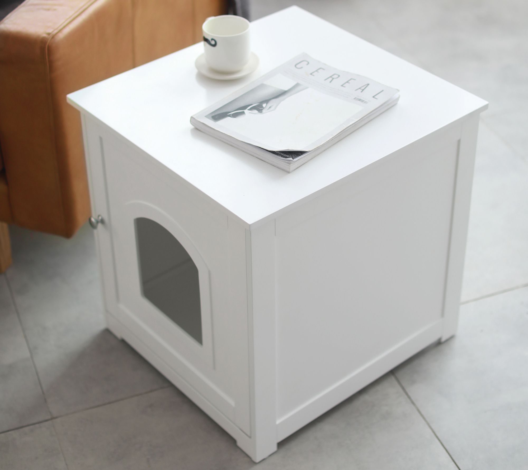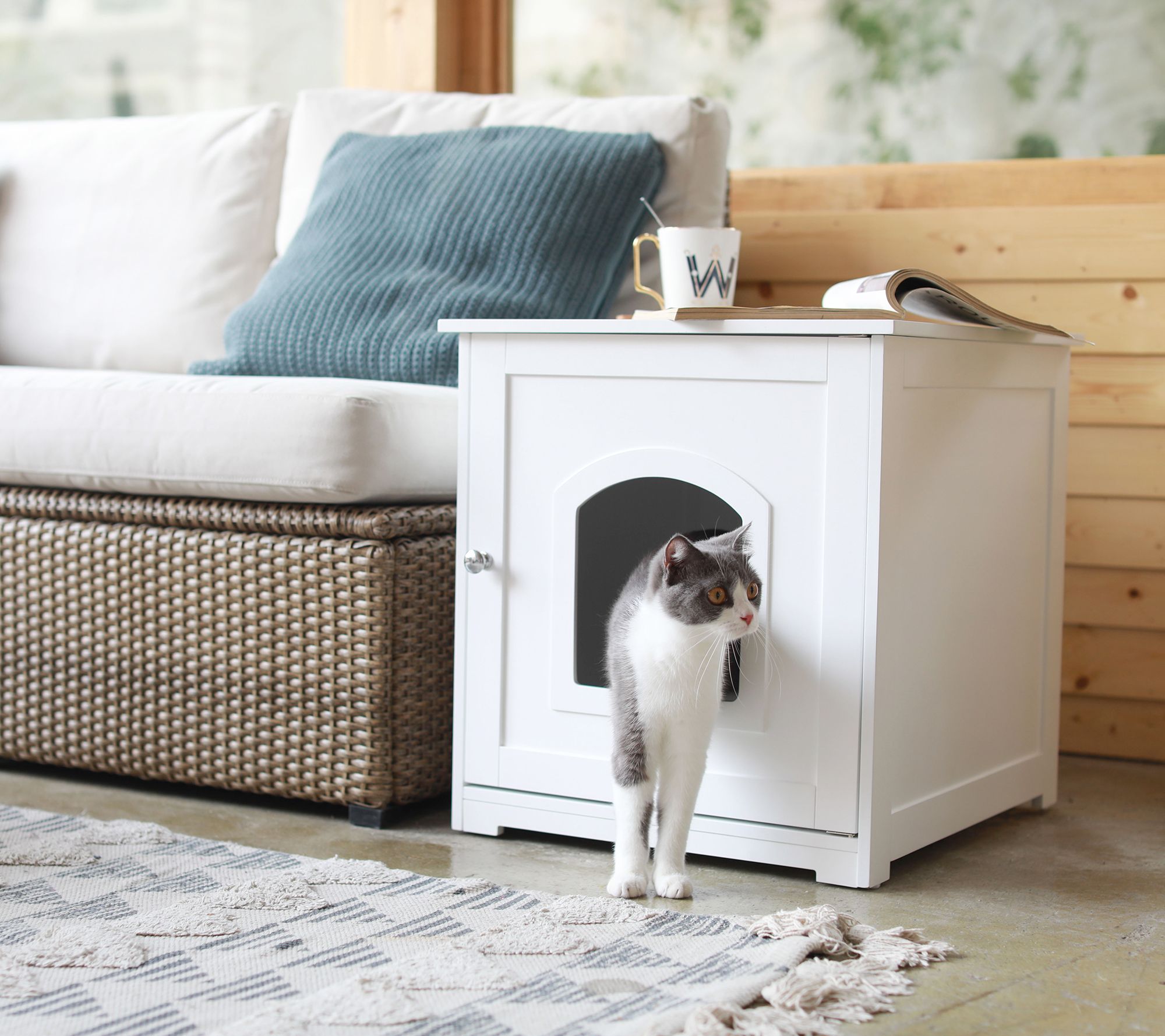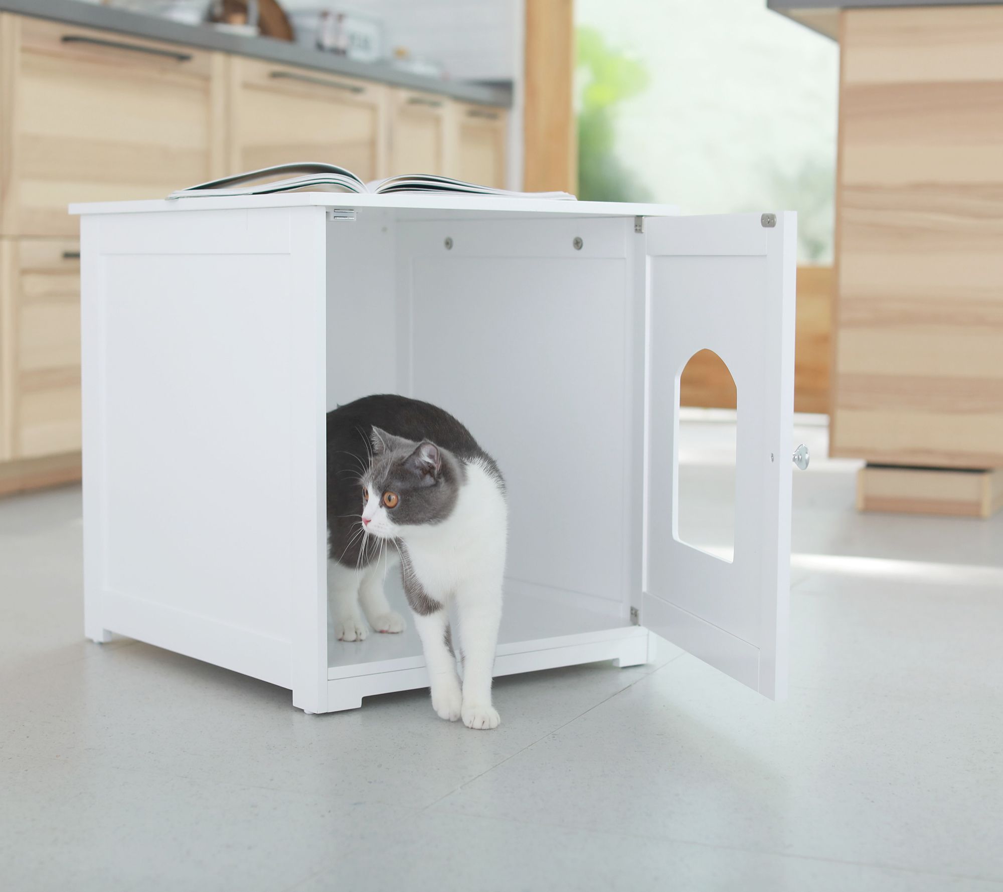 • Accommodates most litter box sizes, not included