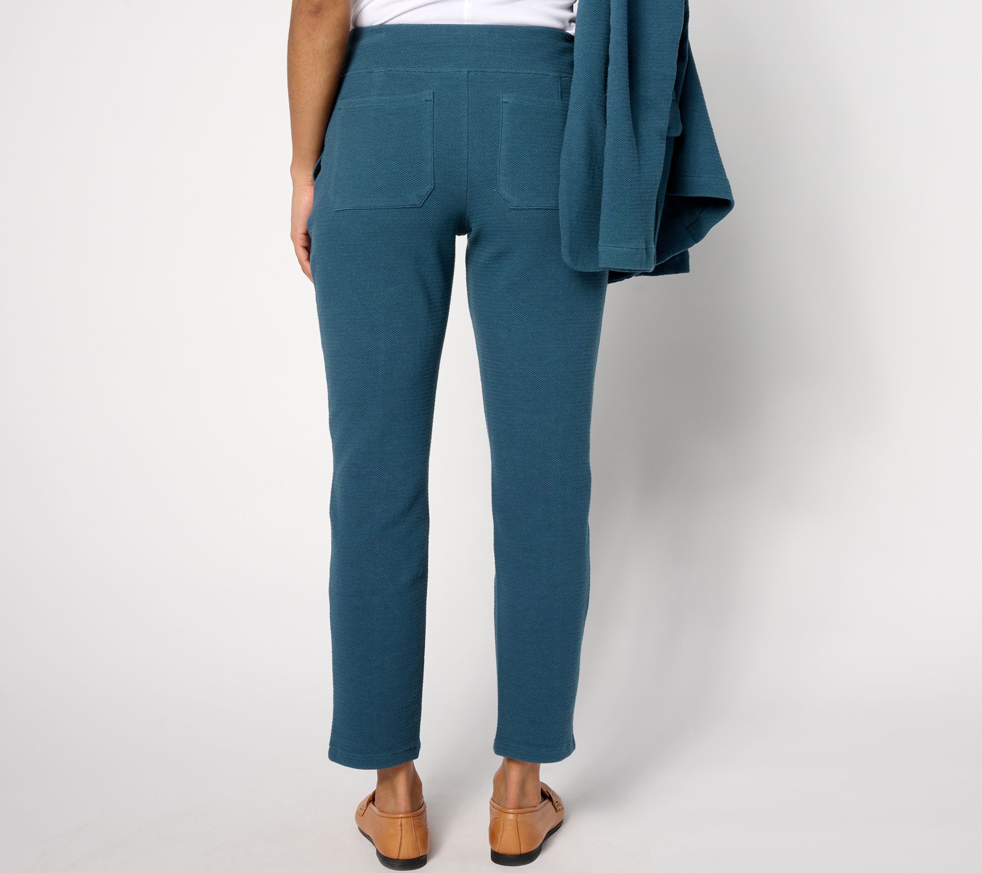 Work the room in these textured ponte pants that easily transition from work to weekend. Front seams with a notch at the hem elongate the legs while adding visual appeal. From zuda®.